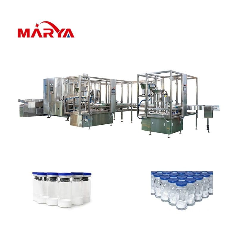 - De hele poedervullijn kan een rechtlijnige lay-out aannemen om het risico op kruisbesmetting van medicijnen te verminderen en een aseptisch niveau te garanderen;