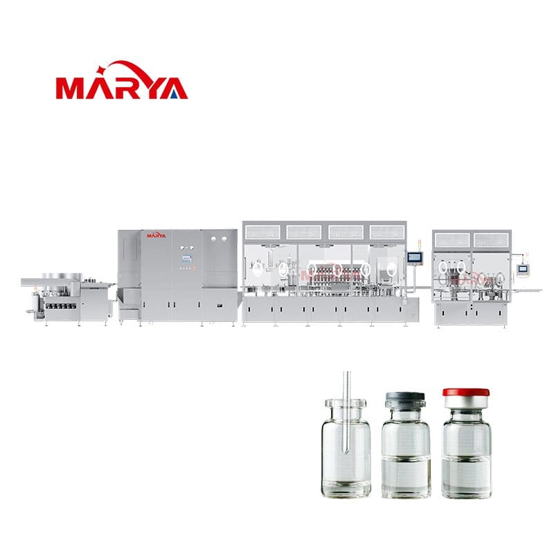 The vial liquid filling line is composed of ultrasonic vial washing machine, dryer sterilizer, vialย injectable fillingย machine, vial stoppering machine and vial capping machine. It can complete spraying water, ultrasonic cleaning, flushing of inner and outer wall of bottle, preheating, drying and sterilization, heat source removing, cooling, bottle unscrambling, (nitrogen pre-filling), filling, (nitrogen post-filling), stopper unscrambling, stopper pressing, cap unscrambling, capping and other complex functions, realizing automatic production of the whole process. Each machine can be used separately, or in linkage line. The whole line is mainly used for filling of vial liquid injections and freeze-dried powder injections in pharmaceutical factories, it can also be applied to production of antibiotics, bio-pharmaceuticals, chemical pharmaceuticals, blood products etc.